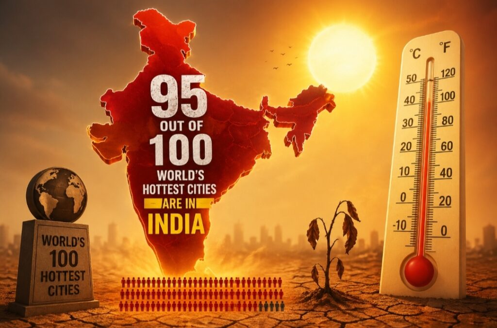 NEW DELHI,27April 2026 : India is at the epicentre of a global heat surge, with an overwhelming 95 of the world’s 100 hottest cities located in the country on Saturday, according to real-time global temperature rankings.