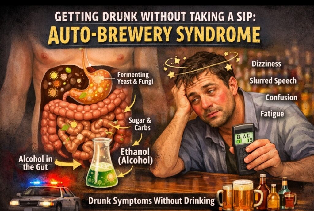 Auto-brewery syndrome develops when certain microbes in the gut break down carbohydrates and convert them into ethanol (alcohol), which then enters the bloodstream. While normal digestion can create trace amounts of alcohol in anyone, people with ABS can produce levels high enough to cause noticeable intoxication. Although the condition is extremely rare, experts believe it is often missed because of limited awareness, difficulties with diagnosis, and social stigma.